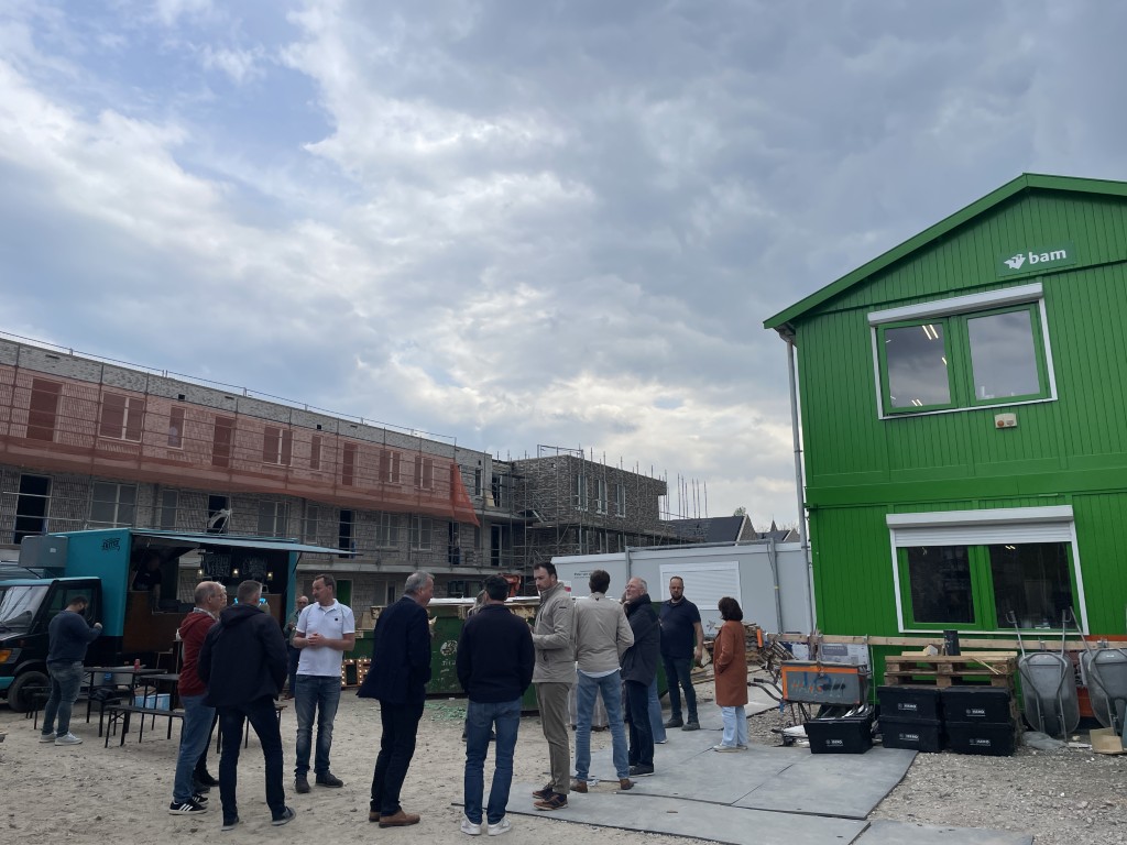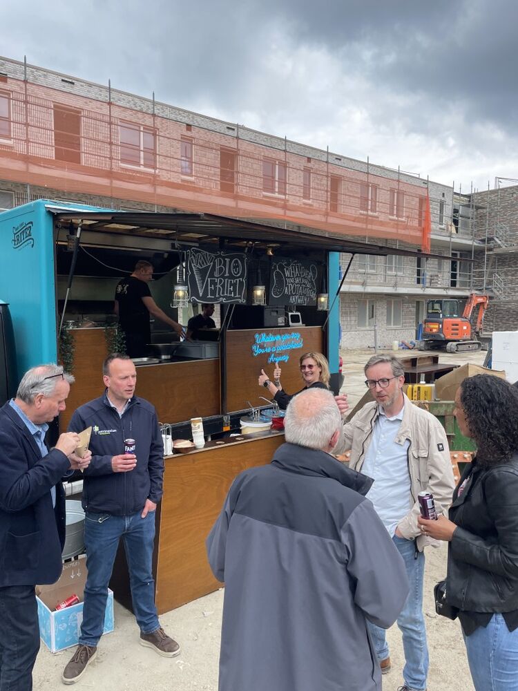 Half april bereikten de 64 sociale huurappartementen hun hoogste punt! Dat werd feestelijk gevierd met een snack kraam voor de collega’s van Patrimonium en BAM Wonen. De appartementen maken deel uit van een bredere gebiedsontwikkeling, waarin eerder al 35 duurzame eengezinswoningen zijn opgeleverd.